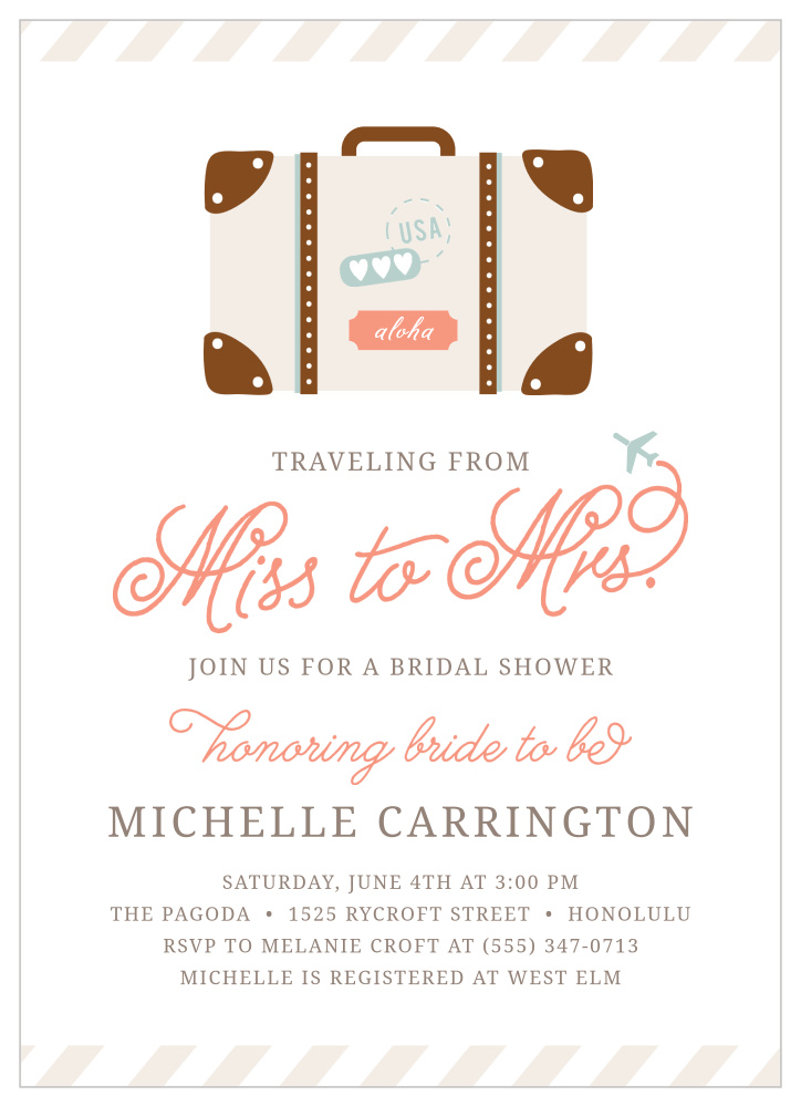 Travel themed bridal shower invitations. Travel themed bridal shower invitation. 40 off with code hellozaugust ends today adventure baby shower invitation gold glitter. 275 editors pick travel bridal shower invitation. Customize these invitations products for your weddings.