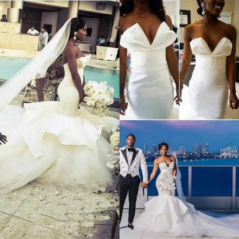 Arabic Design Mermaid African Wedding Dresses Cathedral Train Plus