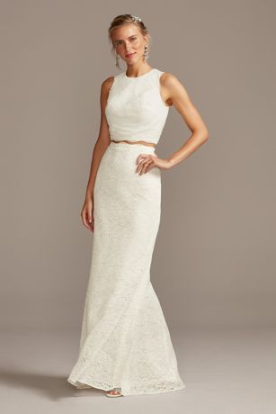 Lace Two Piece Scalloped Sheath Wedding Dress David S Bridal