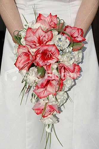 Vibrant White Red Rose Lily Cascading Bridal Wedding Bouquet