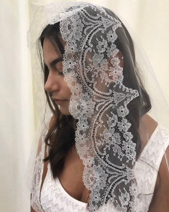 White Sheer Nylon Vintage Mantilla Bridal Wedding Veil Made Etsy