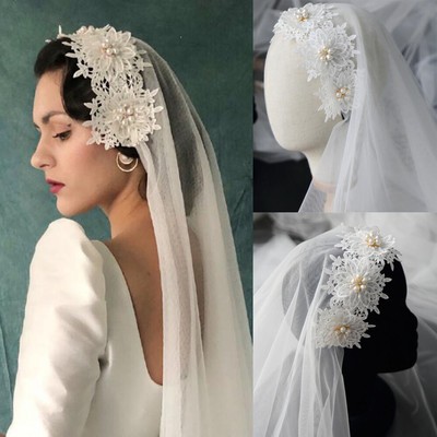 Vintage Wedding Veils Lace Short Pearls Bridal Veils White Ivory