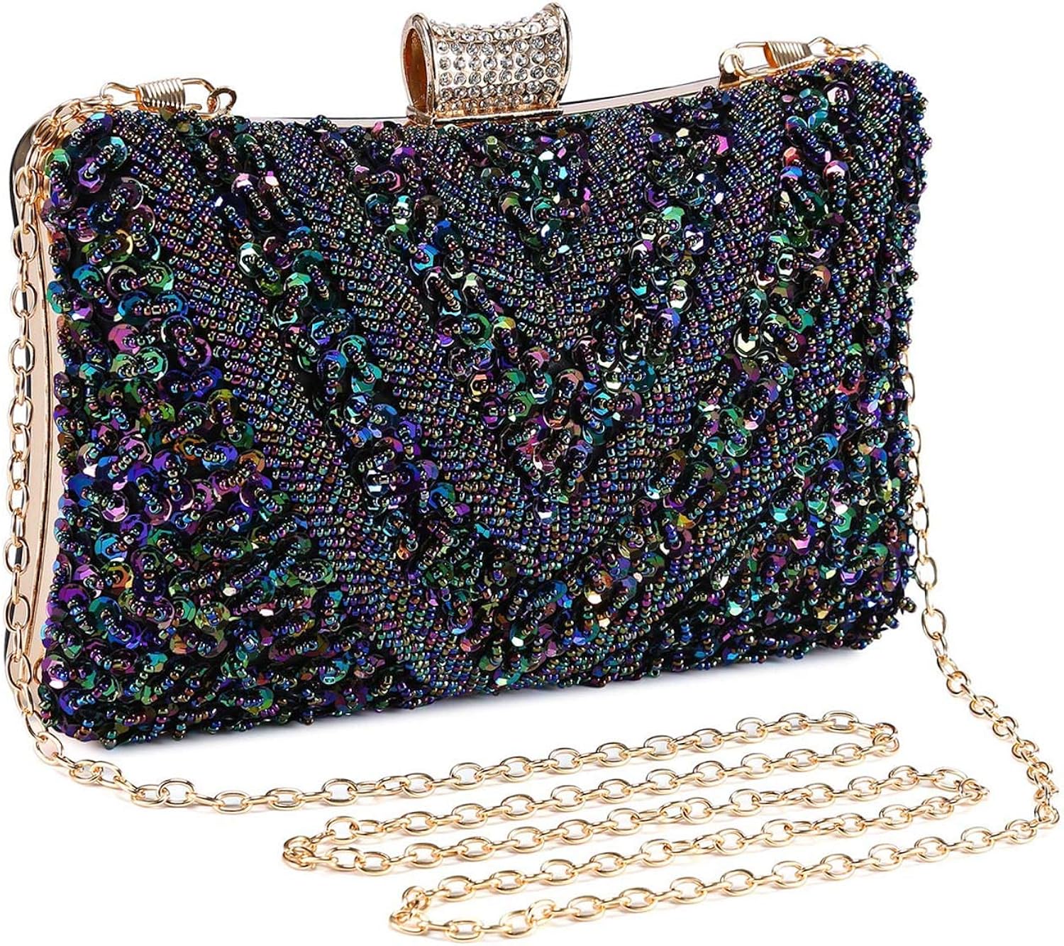 Uborse Women Vintage Clutch Wedding Handbag Bridal Sequins Beaded