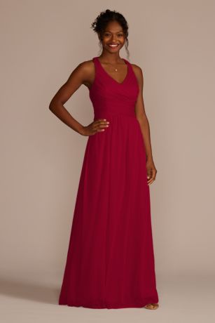 Mesh Long Bridesmaid Dress With Crisscross Back David S Bridal