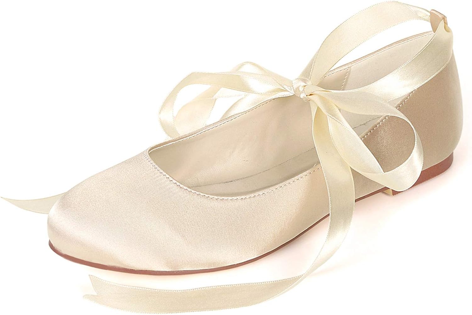 Ccbubble Women Satin Wedding Flats Round Toe Slip On Ribbon Tie