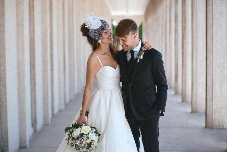Wedding Bridal Hairpiece Fascinator Birdcage Veil White Ivory Etsy