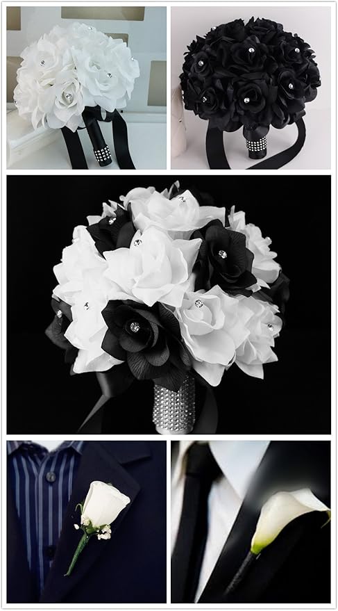 Red White And Black Silk Rose Flower Cascade Artificial Wedding