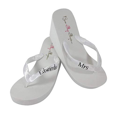 Cute Silver And White Personalized Flip Flops For Brides Wedding