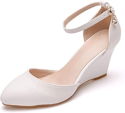 Comfortable Buckle Straps Wedge Heels White Color Wedding Dress