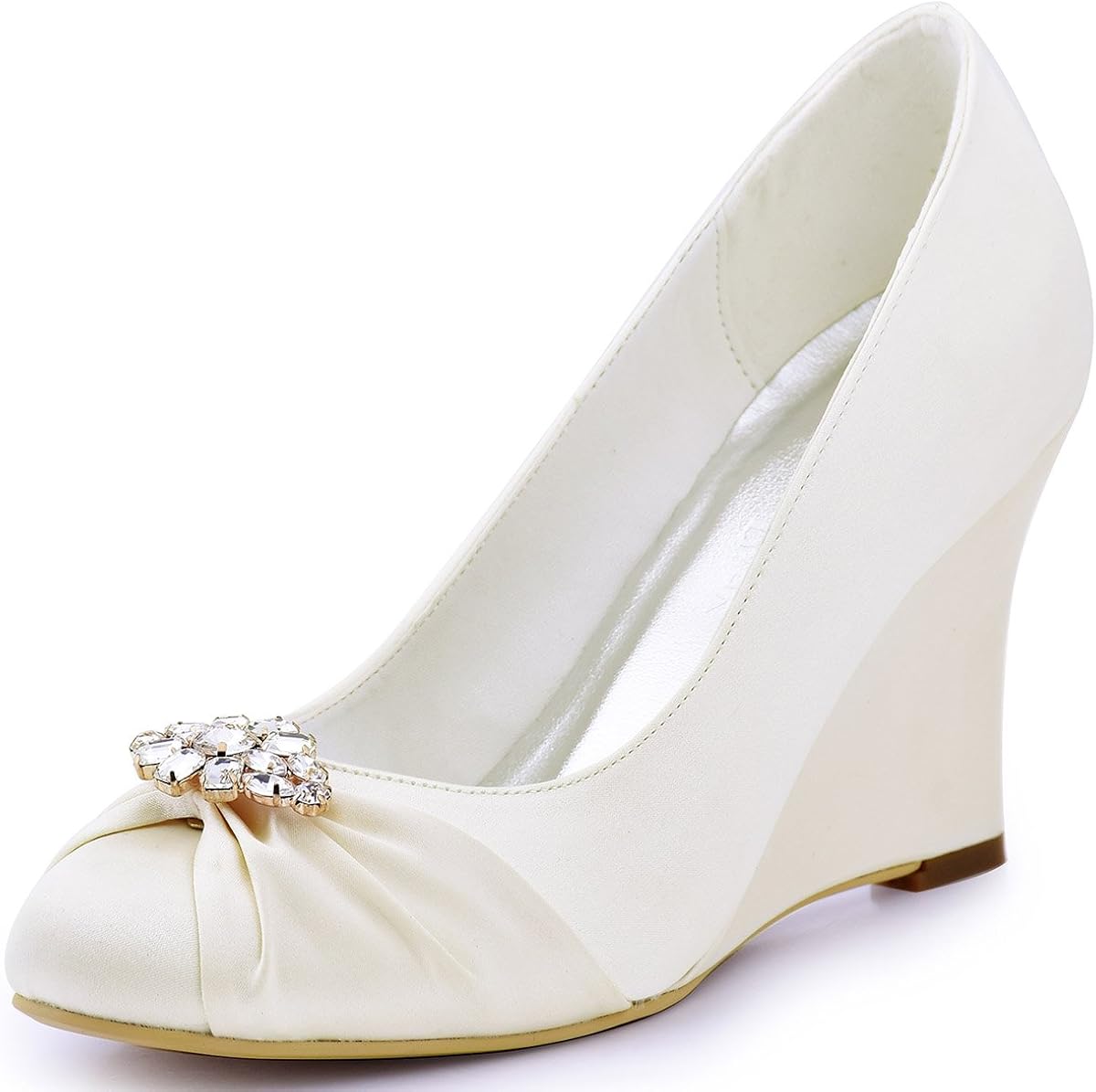 Women S Satin Pu Peep Toe Wedge Heel Wedding Shoes Queenabelle