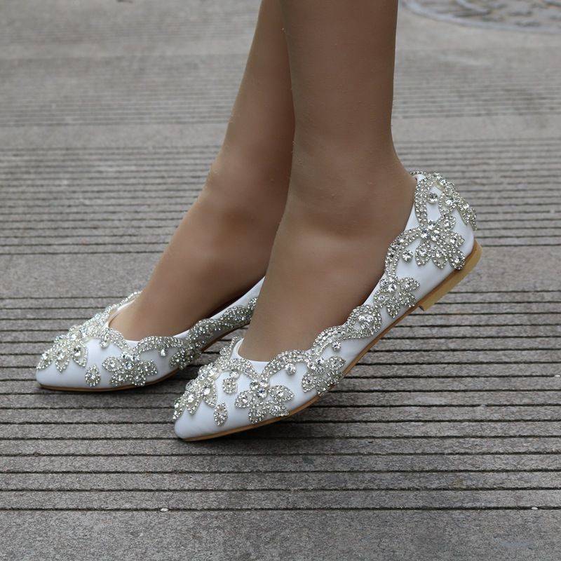 Crystal White Flats Shoes Woman Ladies Bridal Wedding Party Dinner