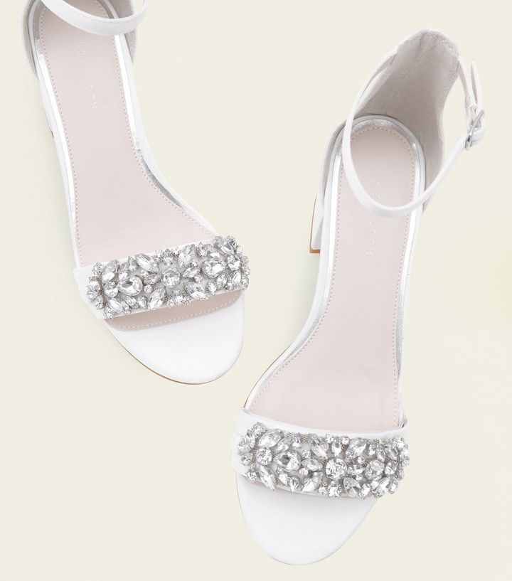 Off White Satin Embellished Wedding Sandals New Look