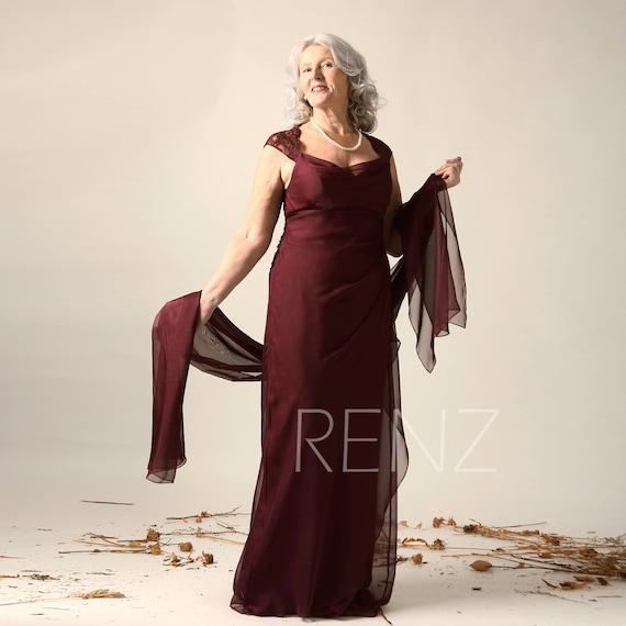 Wine Mother Of The Bride Formal Dress Lace Illusion Cap Sleeve Etsy