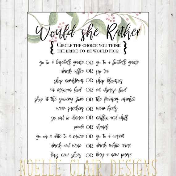 Would She Rather Bridal Shower Game Etsy