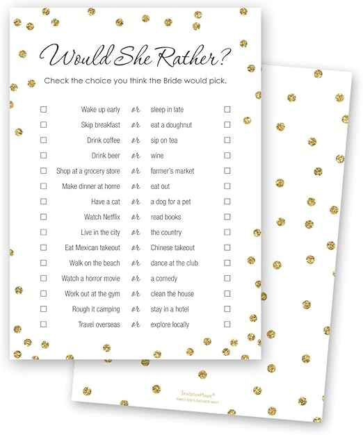 Amazon Com 24 Cnt Would She Rather Bridal Shower Game Faux Gold