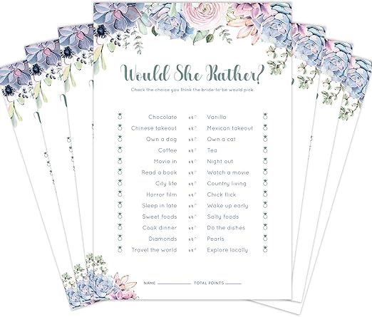 Amazon Com 30 Pack Bridal Shower Games Would She Rather Bridal