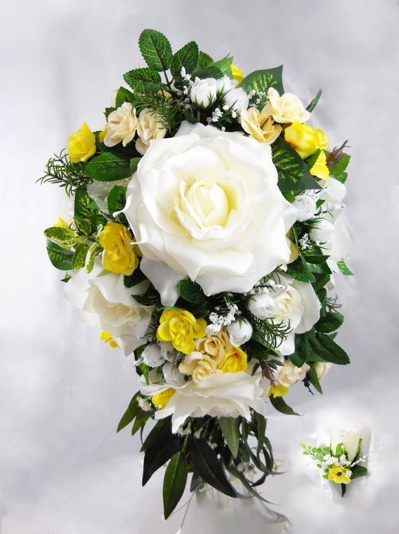 Ivory Yellow Bridal Bouquet Roses Garden Bouquet Ivory Etsy