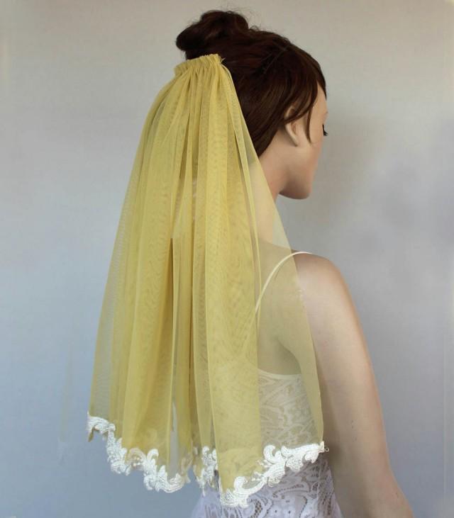 Bridal Veil Pastel Yellow Tulle Lace Applique Trim Unusual Veil Unique Design Handmade 2456815 Weddbook