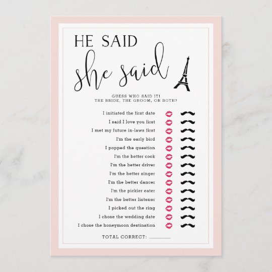 Paris Theme He Said She Said Bridal Shower Game Zazzle Ca